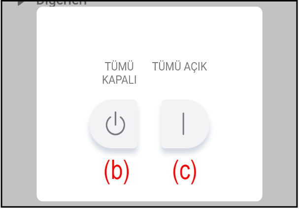 | (b) | Tümünü açma/kapama düğmesi | Tüm klimaların çalışmasını başlatmak/durdurmak için buraya dokunun. |