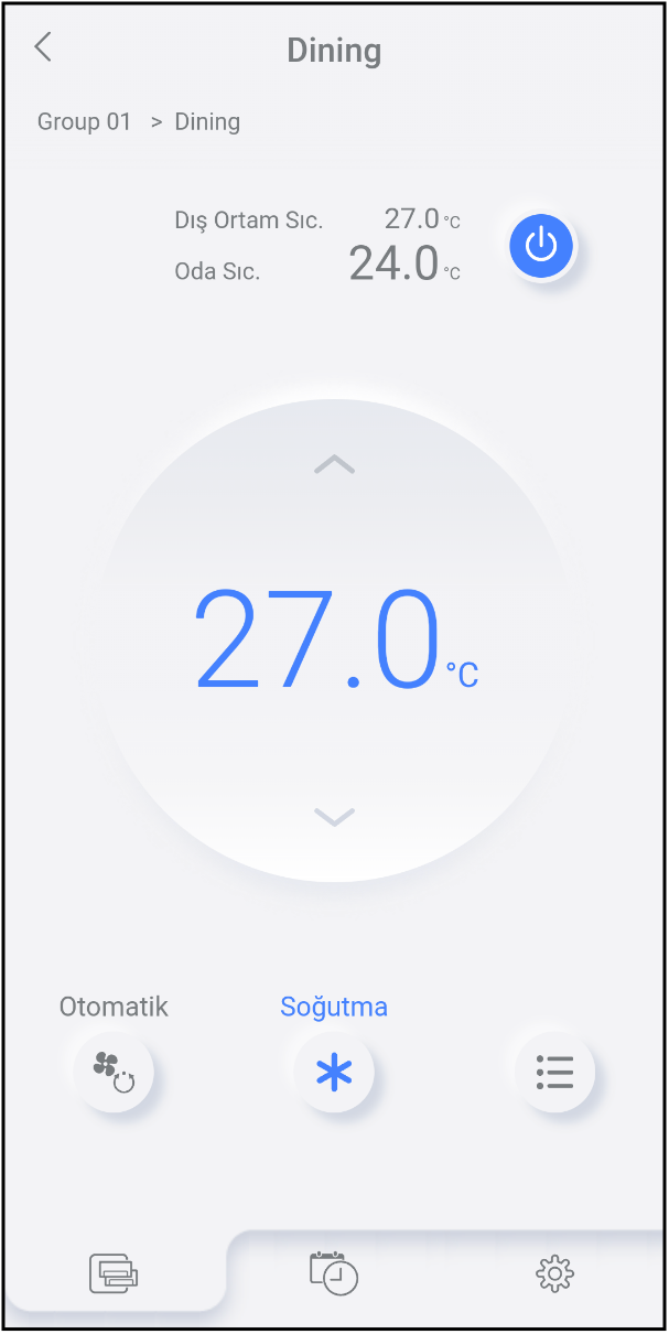 Bu uygulamada, klimayı çalıştırmak için iki kontrol modu vardır: