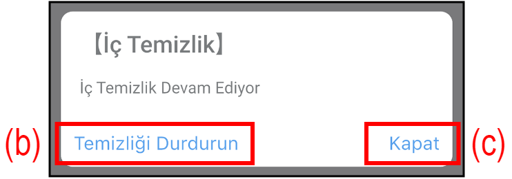 ” ögesi ekranda görüntülendiğinde “Dahili Temizlik (Isıtma Temizliği)” işleminin devam ettiğini gösterir.