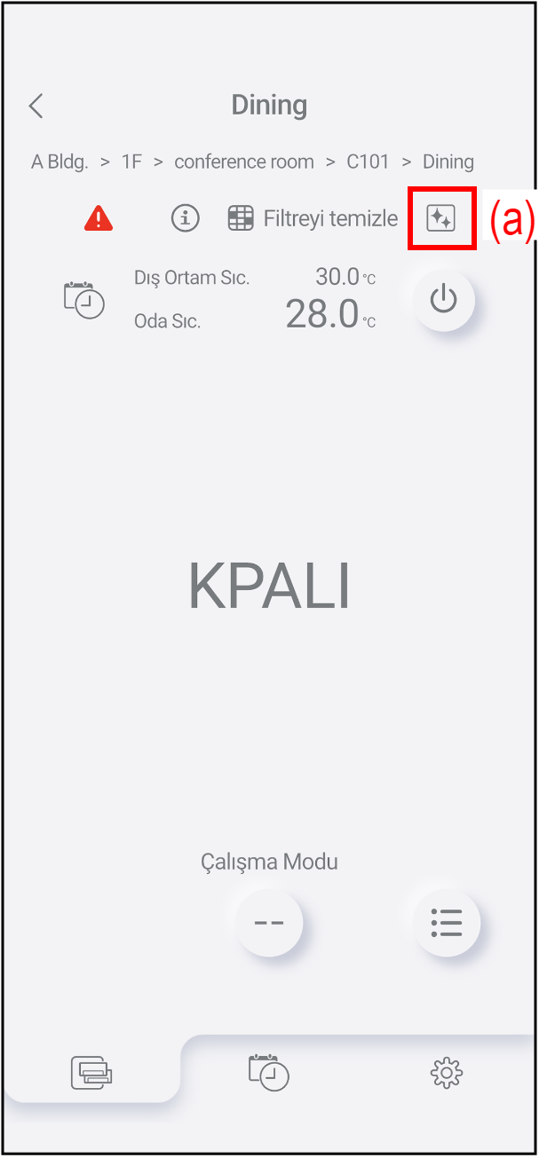 “Dahili Temizlik” penceresini görüntülemek için (a) simgesini dokunun.