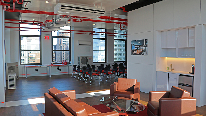 THE AIRSTAGE at the Fujitsu General Solution Center was conceived and designed as a “learning & sharing center” where architects, engineers, building owners, contractors, energy consultants, and HVAC customers can come together to collaborate and share experiences…all with a stunning, penthouse view of Times Square and mid-town Manhattan in the background.