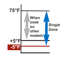Heating capacity at low outdoor temperatures is achieved by adopting a large heat exchanger and a high capacity compressor. Systems operate down to -5°F.