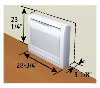 At less than 24” high and 30” wide, floor mount models fit easily under a standard window and can replace a radiator twice its size while producing more capacity.