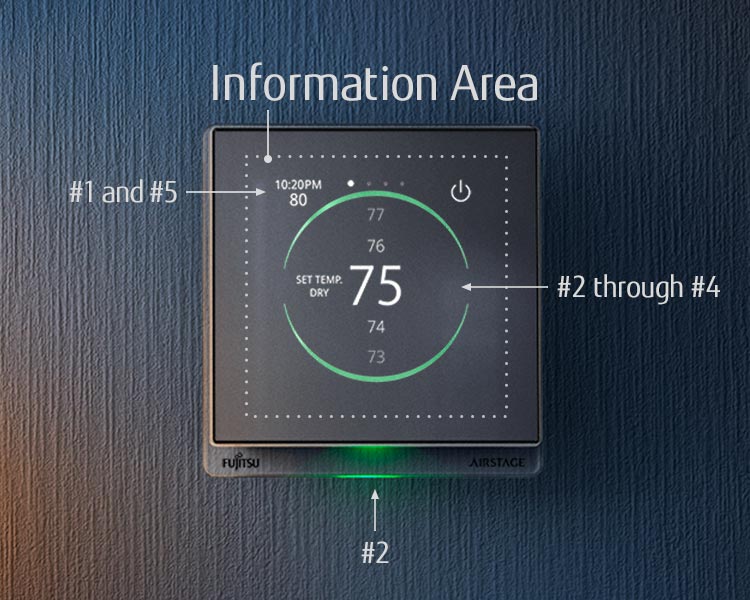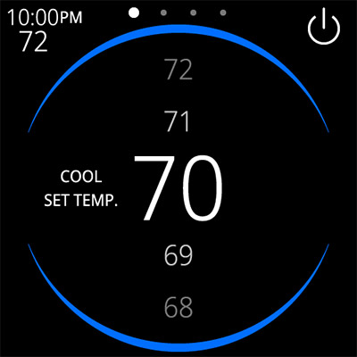 - UI: Swipe up/down, left/right Up/down: Adjust the setting (e.g., temperature) up or down Left/right: Scroll through the settings