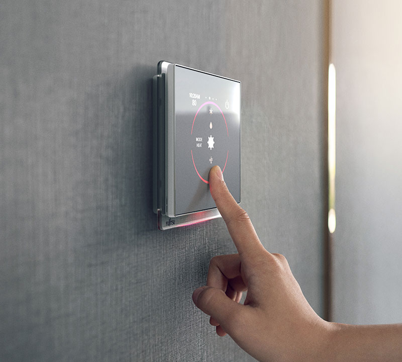 The design goal was to create a controller that is considered interior décor. This was achieved through the use of mirrors, glass, and layered elements that produce a frosted clear panel that appears to float. The end result, KAGAMI, feels as if it is one with the wall.