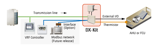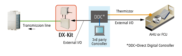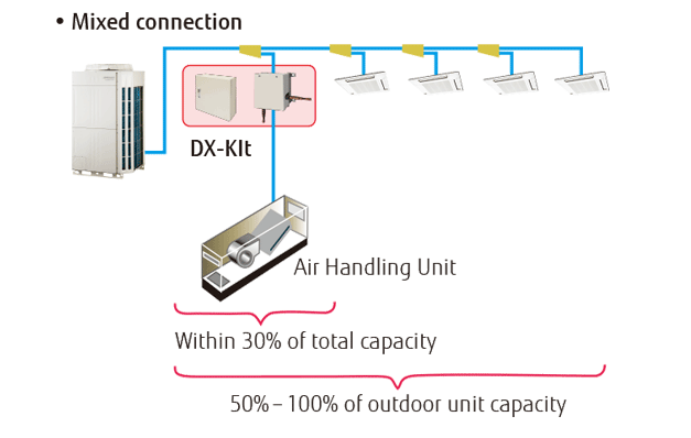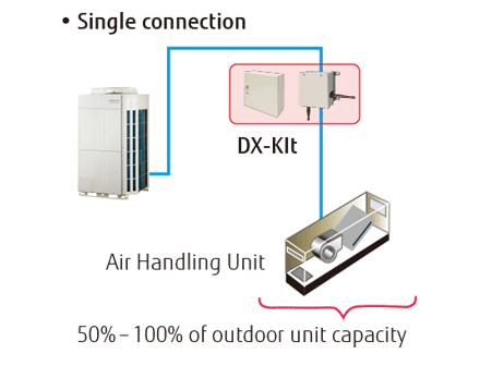 - Connectable DX-Kit system capacity range: 50 to 100% of the outdoor unit capacity