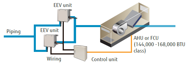 - Outdoor installation: Control unit and EEV unit can be installed at an outdoor space.
