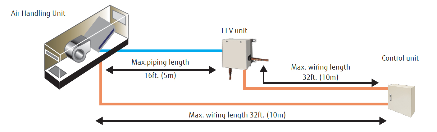 - Max piping length between EEV unit and indoor unit: 16ft. (5m)