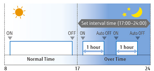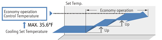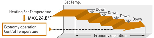 Economy operation can be set by remote controller. The temperature setting is offset automatically over a certain period of time.