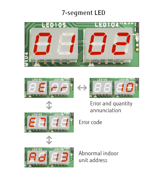 The error status can be checked on an outdoor unit's display.