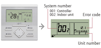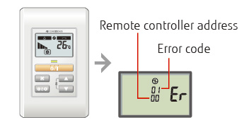 The error status can be checked via a Wired Remote Controller for indoor units.