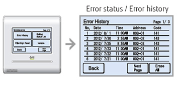 - Address, error code, and the number of errors of an indoor unit in trouble