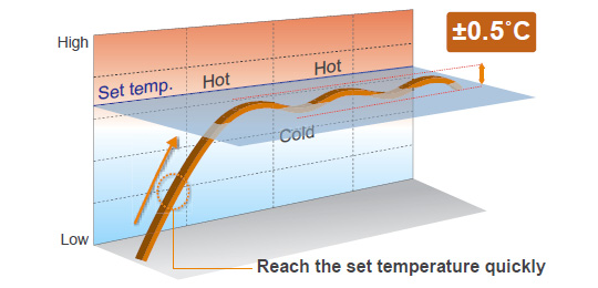 The combination of DC inverter control and individual control of electronic expansion valves of an indoor unit enables the precise and smooth control of the refrigerant flow. The benefit is the ability to set the room temperature up or down in 0.5°C increments.