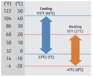 All outdoor units have a wider operating temperature range and can operate in extreme temperature conditions.