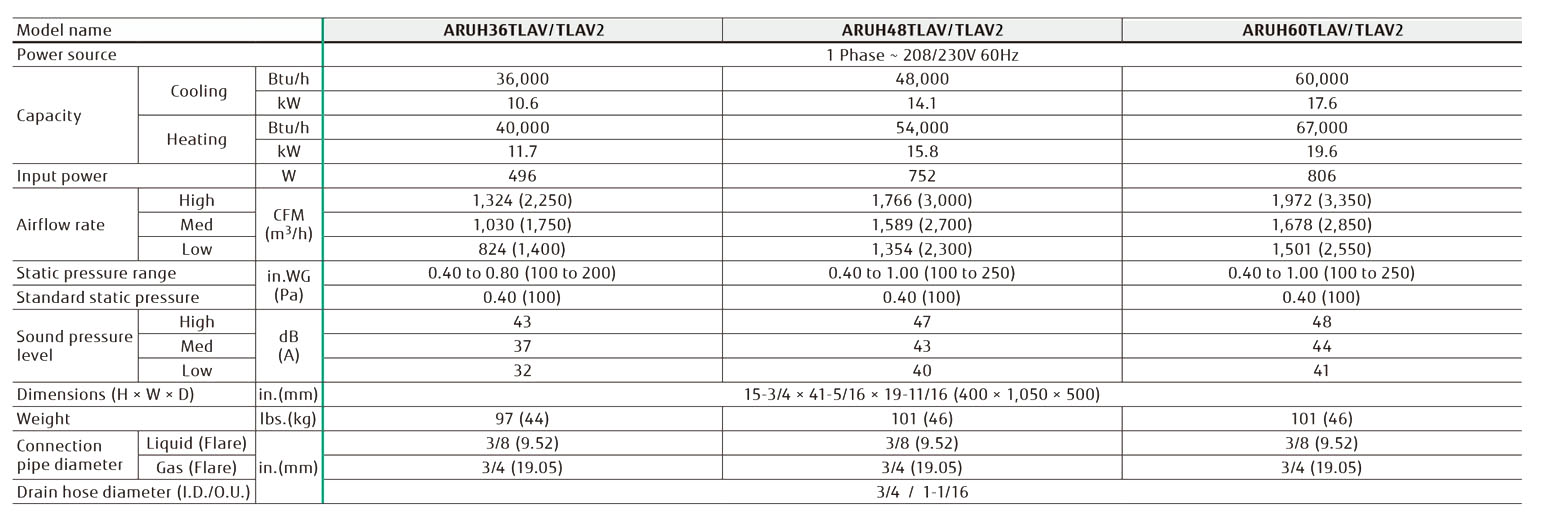 Built-in protective functions may limit capacity or shut off unit if unit is operated outside of unit design operating temperature ranges. - Cooling :