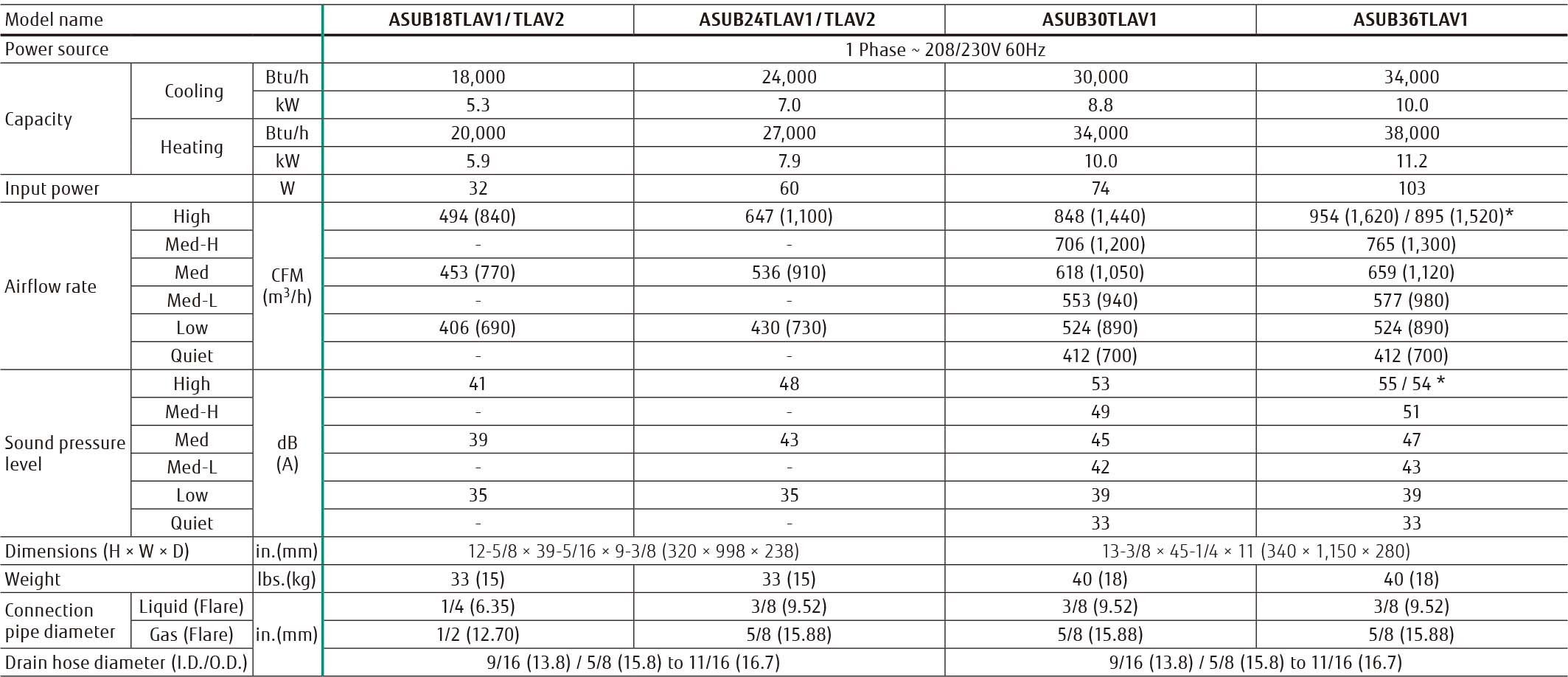 Built-in protective functions may limit capacity or shut off unit if unit is operated outside of unit design operating temperature ranges. - * :