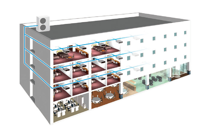 Our advanced refrigerant control technology allows us to achieve a total refrigerant piping length of 1,312ft. (400m). This opens up new possibilities in system design.