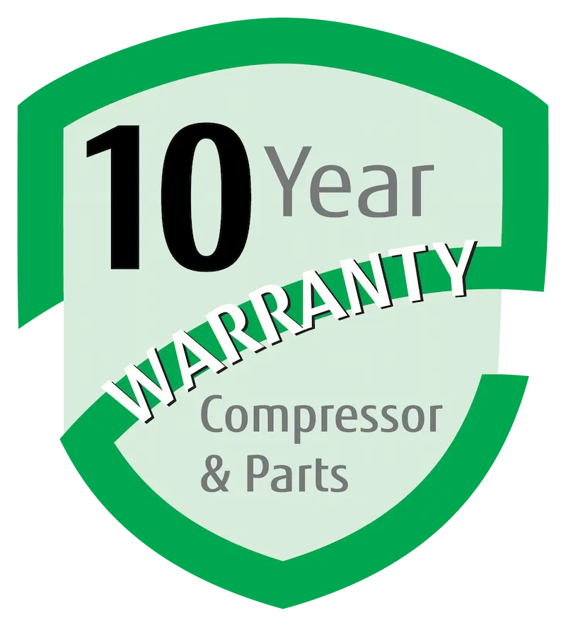10 Year Compressor, 10 Year Parts Warranty when registered within 60 days of installation in a residence.