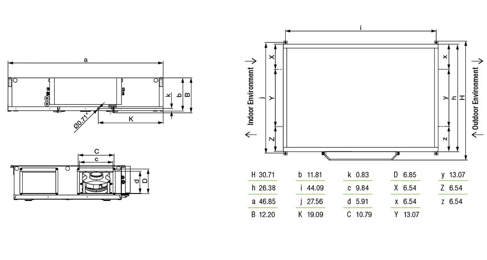 Exceptional energy performance thanks to its aluminum counterflow heat exchanging core.