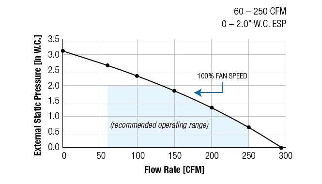 | Airflow (CFM) | 250 | 200 | 150 | 100 | 60 |