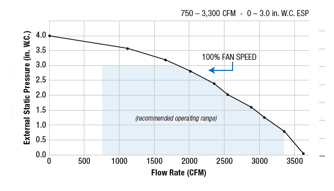 | Maximum Flow (CFM) | 3,300 | 3,200 | 3,000 | 2,500 | 2,000 |