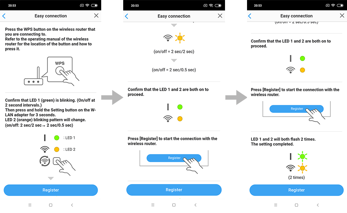 Then press and hold the Setting button on the W-LAN adapter for 3 seconds.