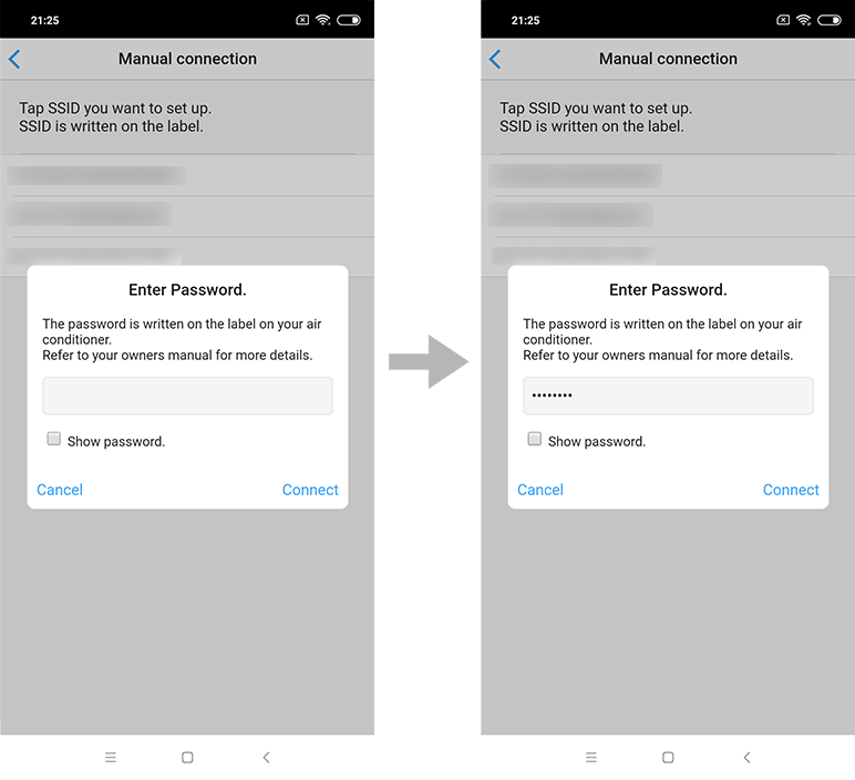 Depending on the type of W-LAN adapter, you may not need to enter a password.