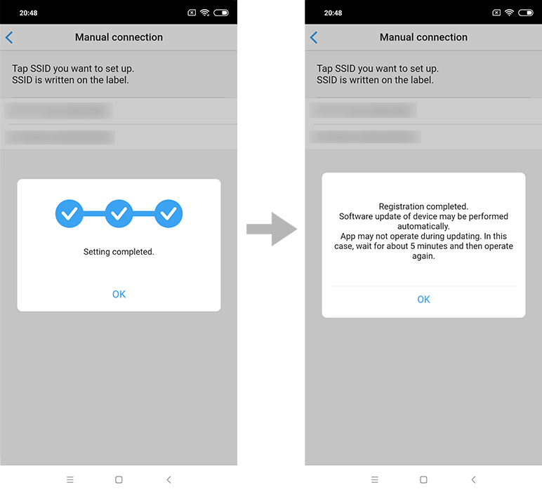 For iOS, it is necessary to select the SSID of the adapter on the terminal's W-LAN setting screen.