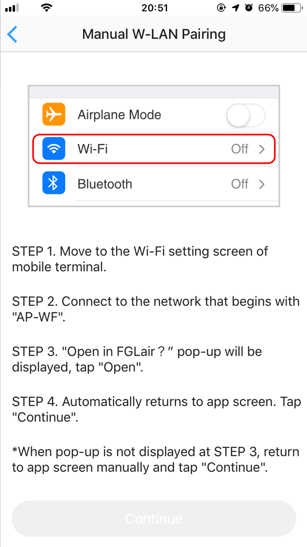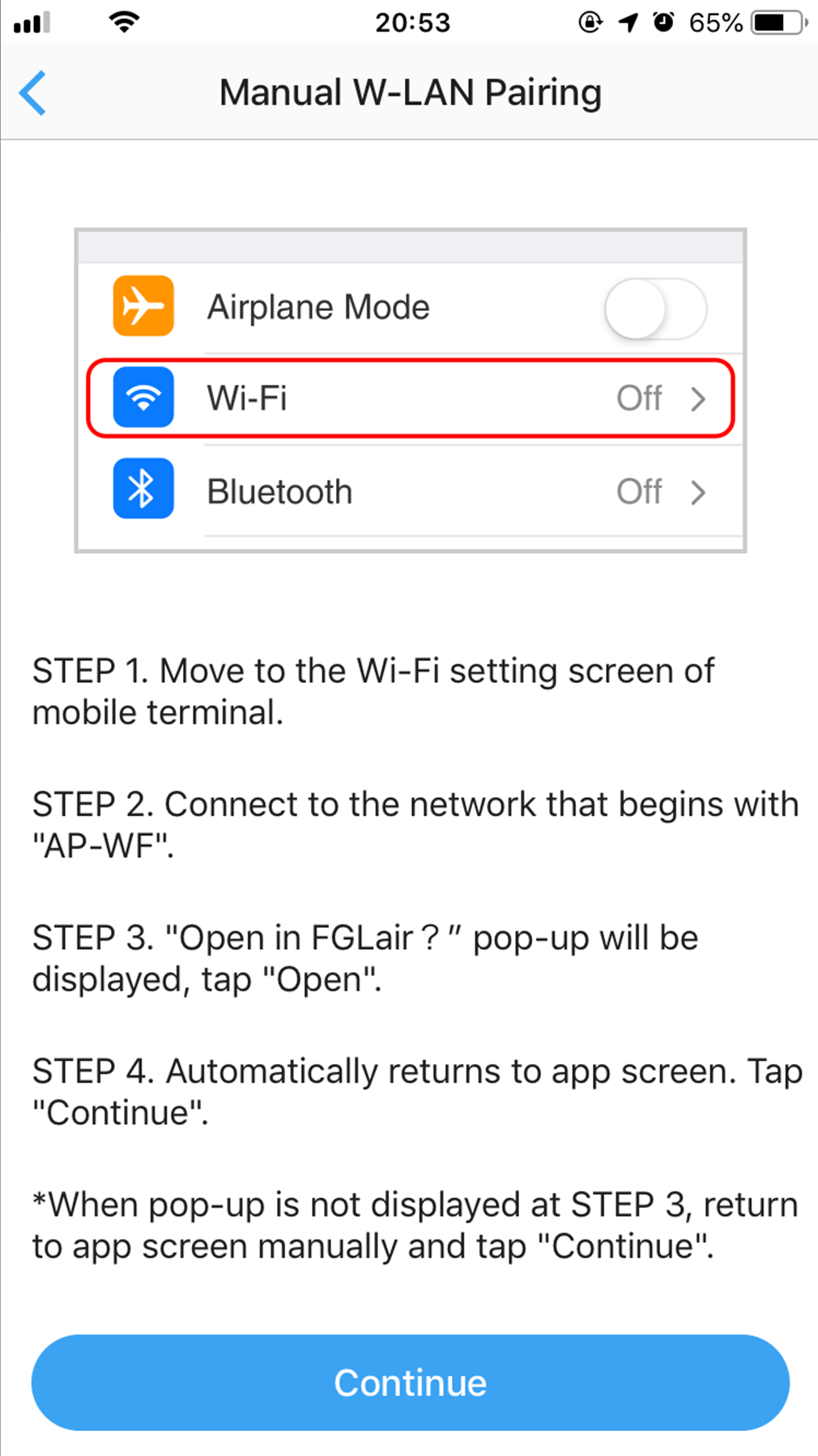 FGLair™ app SET UP - STEP4: Pairing External type - Manual connection