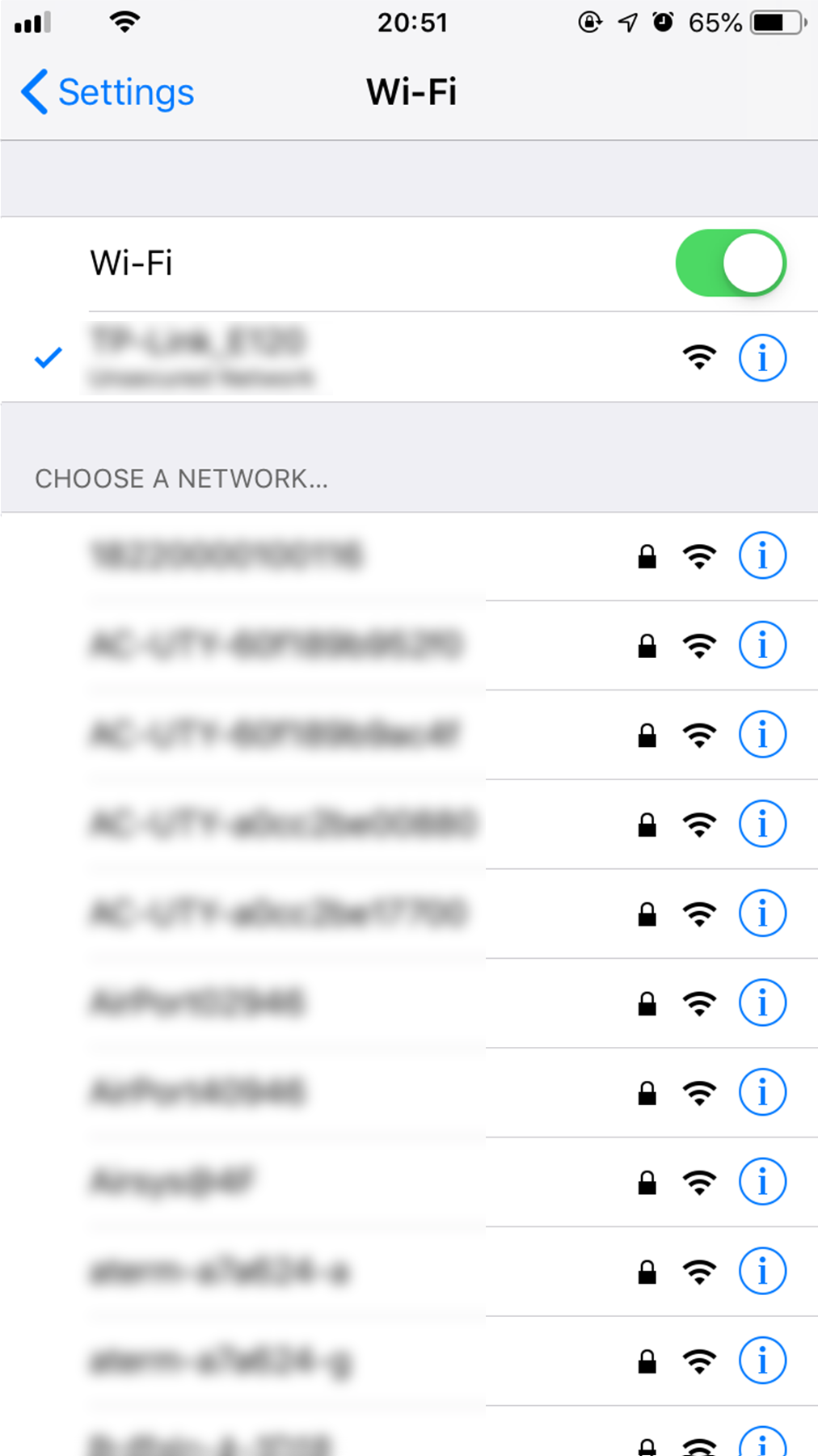 Open [Setting] -> W-LAN by following the instructions on the mobile app.